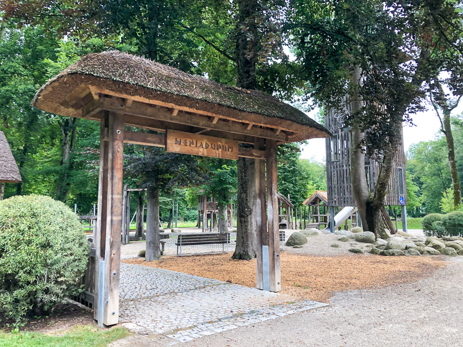 Вторая площадка — «Кельтская деревня Вениадунум» (Keltendorf Weniadunum) — посвящена кельтам. Дело в том, что на территории современного Эрдинга нашли большое захоронение латенского культурного периода и порядка 30 небольших кельтских хозяйств. Находки содержатся в Городском музее Эрдинга, куда мы доберёмся в другой раз. А площадка рассказывает о том, кто такие кельты, как они строили дома и поселения.