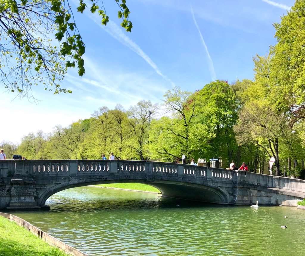 Зелёный сквер у канала, ведущего ко дворцу, с тенистой игровой площадкой. Вдоль канала проложен веломаршрут, соединяющий дворец Нимфенбург с Олимпийским парком.