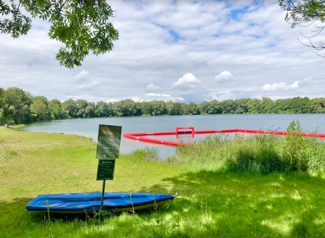 Второе озеро — для спортсменов. Шлагбаум на входе и табличка, на которой так и написано: «Sportsee». Там лодки, SUP’ы, огороженная площадка для какой-то игры в воде и пояснения мелким шрифтом про участников спортивного общества (Vereinsmitglieder).