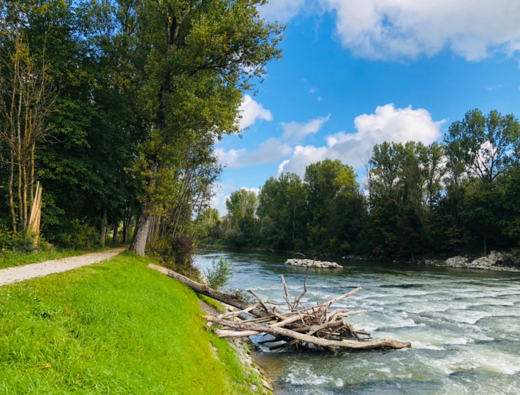 Изарский веломаршрут (Isarradweg) тянется на 299 км вдоль реки, и наверняка на любом его участке приятно кататься. Сегодня я проехала сегмент в 11 км к северу от Мюнхена — от научного городка в Гархинге до Пуллингских озёр.