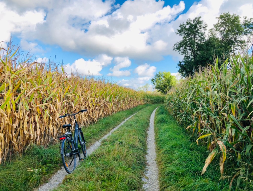 Мой веломаршрут тут заканчивается. Если вы устали, можно на станции Pullach сесть в поезд S1, идущий из Фрайзинга в Мюнхен. Я же прокатилась по полям до соседнего Нойфарна, но о нём расскажу в другой раз.