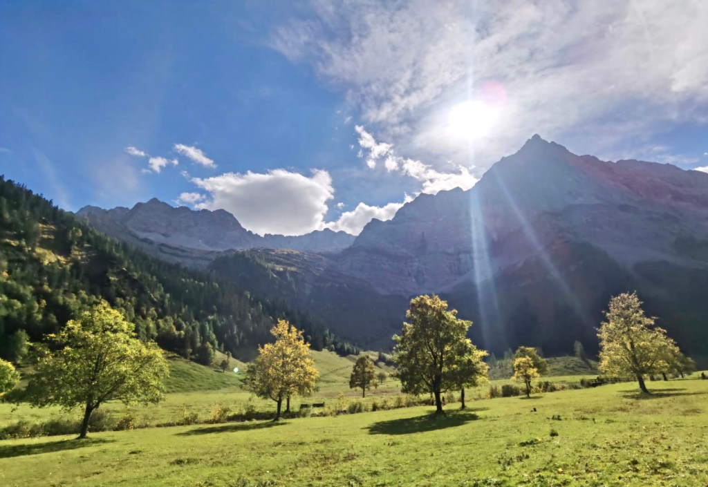 Австрия-ты прекрасна! Уже пару лет я мечтала побывать в этом месте, именно в осеннюю пору. Всем, всем, всем советую в ближайшие пару недель поехать в долину Риссталь (Risstal), а конкретно к Großer Ahornboden. От Мюнхена 107 км, в пути 1 час 45 минут.
