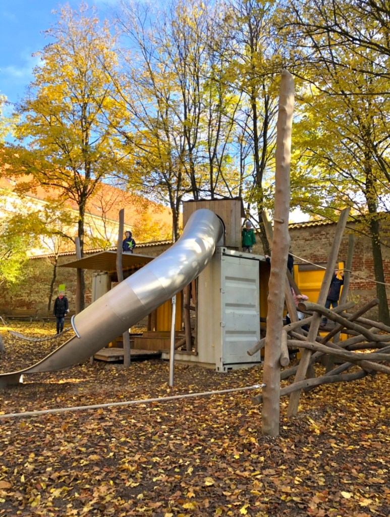 И в этом месте рекомендую продолжить прогулку — сначала по дикого вида парку, потом по дорожке вдоль края горы. Тропа постепенно спустится к парку на берегу с ещё одной отличной игровой площадкой Amper-Spielplatz.