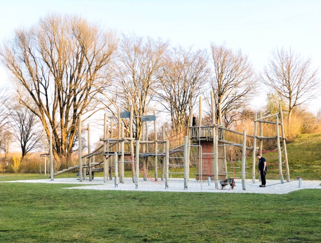 Сворачиваем от берега налево под синий мостик и выезжаем к огромной спортивно-игровой площадке Frezeitanlage Eching. Тут можно задержаться надолго.