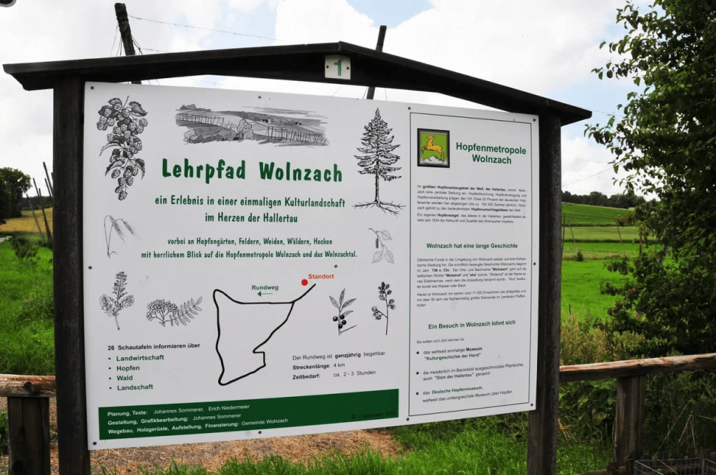 В регионе Халлертау в 60 км к северу от Мюнхена расположены самые крупные плантации хмеля в Баварии. И там же создали музей этой культуры, а рядом с ним информационную тропу с табличками протяжённостью 4 км.