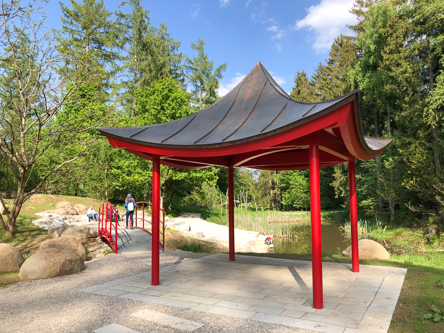 Sichtungsgarten: пруды с кувшинками, поляны нарциссов, густой лес, коридор из глициний, много табличек о растениях. У парковки симпатичное кафе в стеклянной оранжерее.