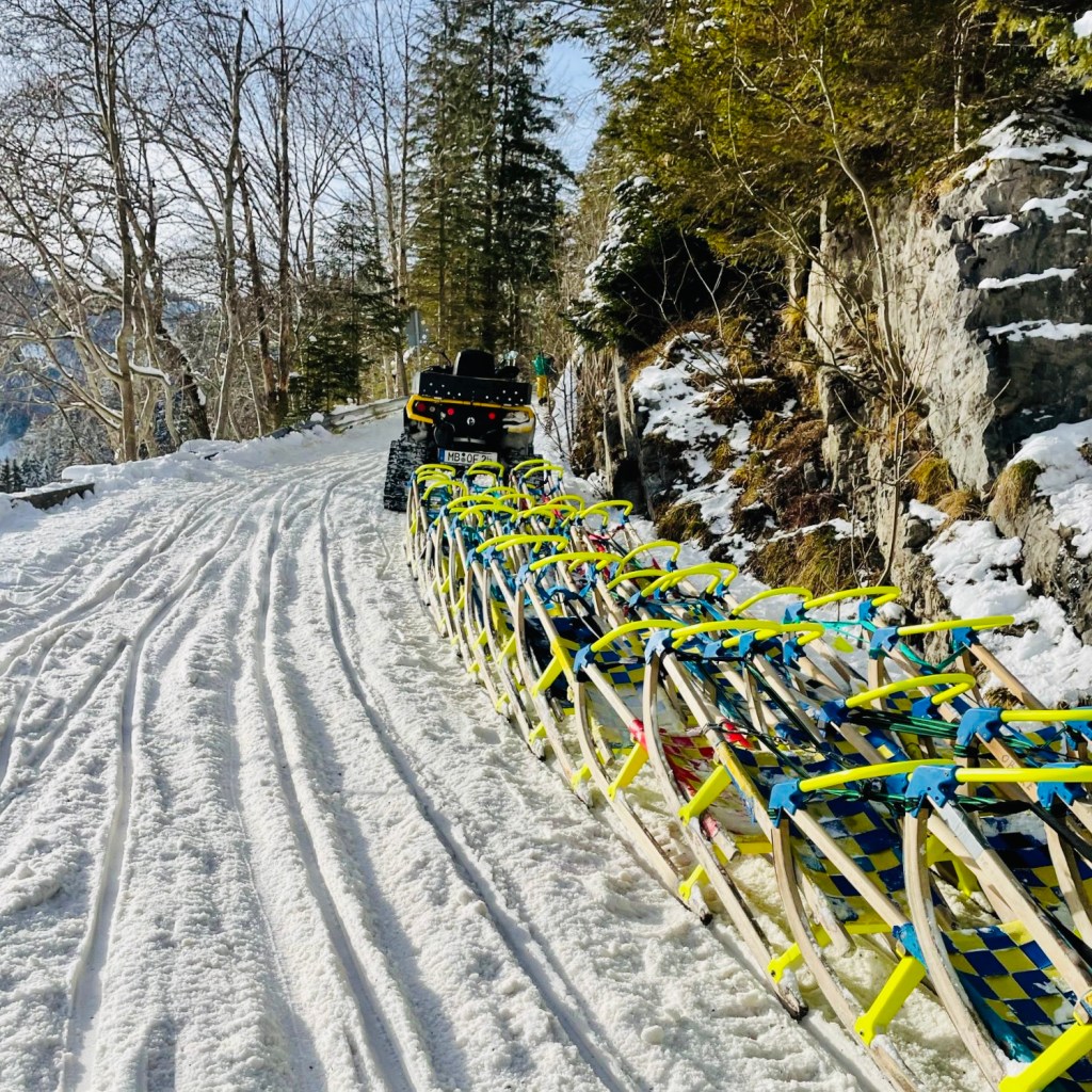 В Ленггрисе есть две саночные трассы, но без подъёмников. Чтобы покататься, придётся подняться наверх пешком и с санками. Подъём займёт примерно полчаса.