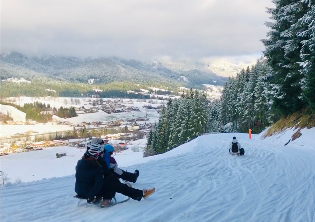 Спуск на санках в Альпах — это не то же самое, что кататься с небольшой горки в мюнхенском парке. Это полноценный зимний спорт, и внимания к себе требует такого же, как любой спорт. Не забываем про технику безопасности, особенно когда дело касается детей.