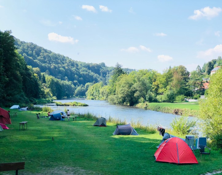 Кемпинг в Паппенхайме расположен на берегу реки Альтмюль в 5 минутах ходьбы от центра городка и в 10 минутах от замка. Он довольно минималистичный. Большую часть территории занимают «дома на колёсах», а для палаток выделена тенистая полянка на острове.