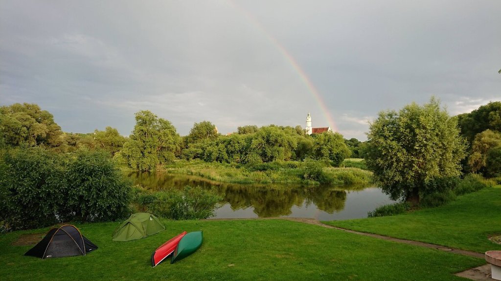 Лагерь для палаток и домов на колёсах в Ландсхуте расположен в отдалении от центра города, зато прямо на берегу Изара. Добраться до центра можно на автобусе.