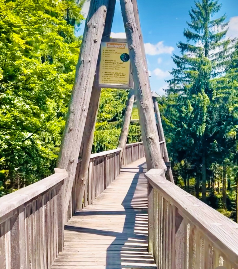 Это первый в мире путь по кронам деревьев. Мост носит гордый титул das Original и в 2025 году отмечает 20-летний юбилей. Самая высокая точка — 15м. Длина маршрута — 2 км.