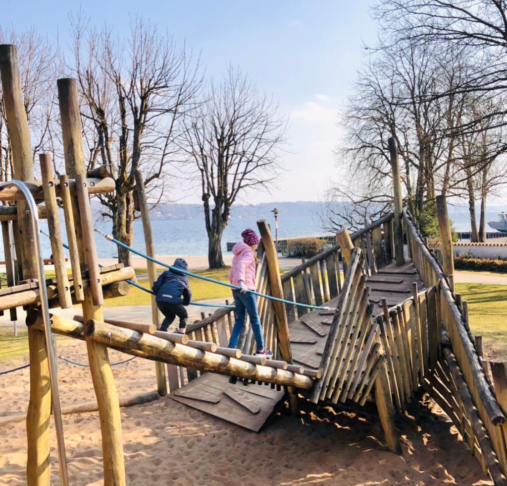 На окраине Эхинга, неподалёку от Эхингского озера, есть классный парк с несколькими игровыми площадками, рассчитанными на детей разного возраста. Также там есть спортивные тренажёры на свежем воздухе и скалодром, а ещё биргартен с собственной игровой площадкой.