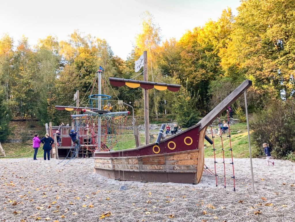 На берегу Карлсфельдского озера к западу от Мюнхена спрятана большая игровая площадка в тематике Робинзона Крузо. Там есть корабль, домики, тарзанка, горки и прочее приятное. А рядом пляж, где можно купаться.