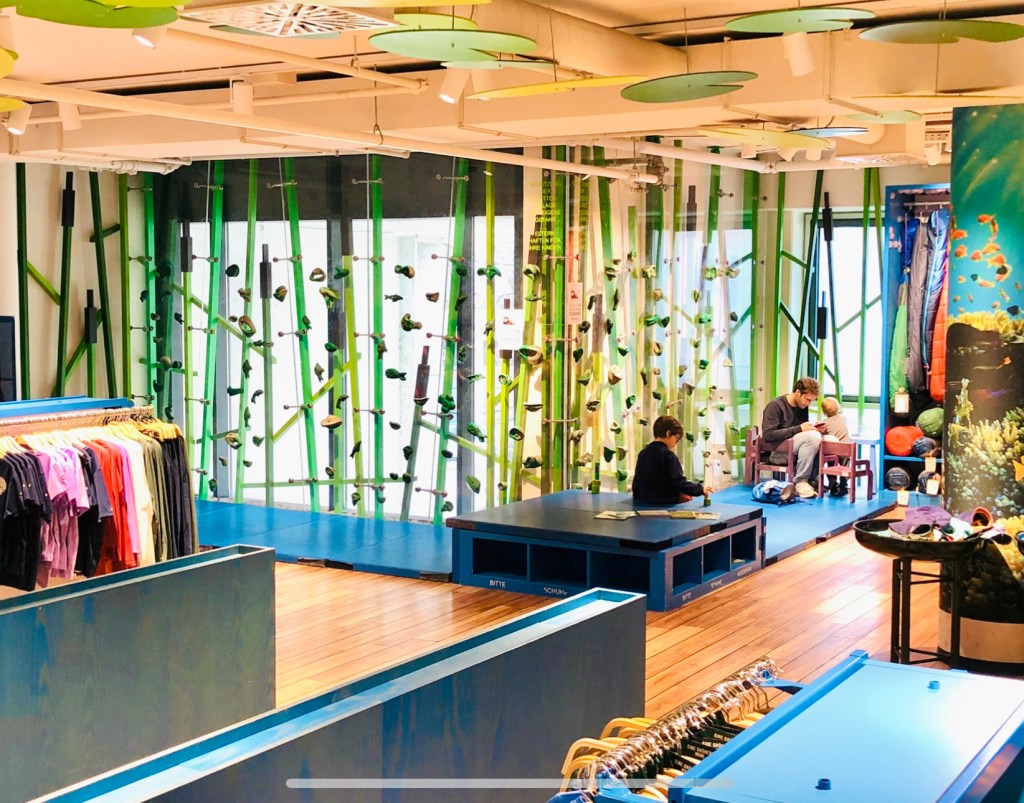 Этот большой спортивно-походный магазин расположен напротив исторических ворот Изартор. В глубине его есть детская зона с небольшим скалодромом и столиком для рисования с карандашами, и даже с детским туалетом.